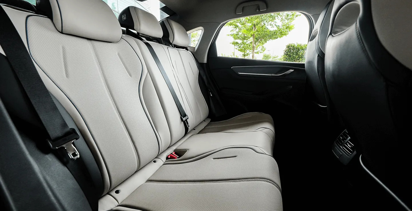 - Tiện nghi: Hàng ghế trước có chi tiết tay vịn và chỗ đặt cốc đôi, tấm sạc không dây, các nút chức năng vật lý cho các thao tác nhanh.