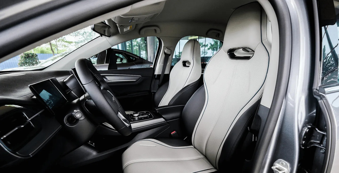 - Không gian nội thất của BYD Seal 5 mang phong cách hiện đại, tinh tế với tông màu ghi và be trang nhã, góp phần tạo cảm giác sang trọng và dễ chịu.